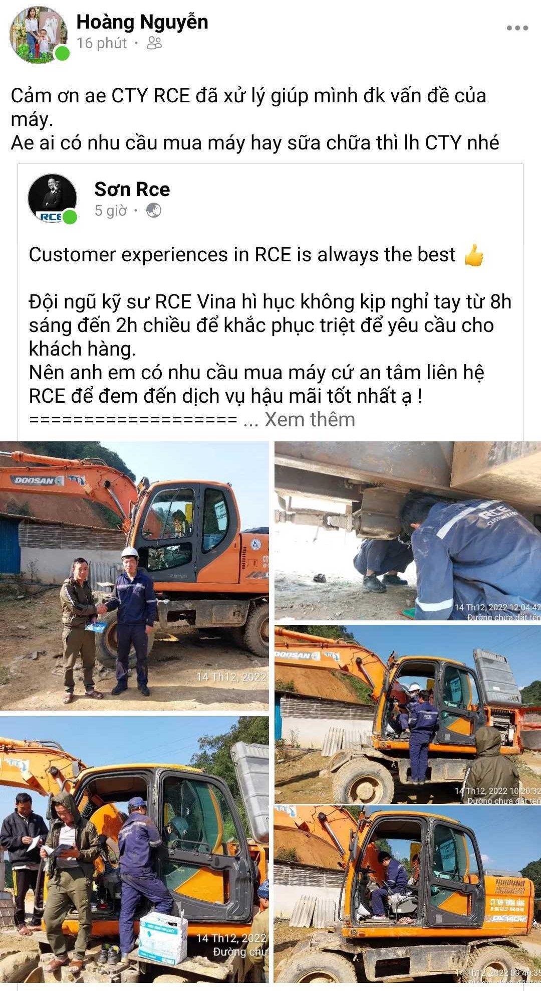 Chúng tôi thực sự rất vui và tự hào khi thấy khách hàng hài lòng sau khi chúng tôi khắc phục lỗi. Đặc biệt hạnh phúc khi khách hàng tin tưởng giới thiệu về dịch vụ, về công ty và về máy móc cho người quen của họ. Sau một khoảng thời gian, chúng tôi cũng xuất hiện trên FB nhiều hơn qua sự chia sẻ của khách hàng từ đó có nhiều khách hàng biết đến hoạt động của RCE. Việc lan tỏa hoạt động này tới nhiều người giúp chương trình của RCE có ý nghĩa và kết quả thiết thực hơn bao giờ hết.